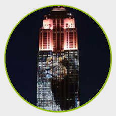 世界七大工程奇跡之一的美國紐約帝國大廈用33層樓的墻面,在三個小時內循環亮燈展示了包括上月被獵殺的獅王西塞爾在內的共計160種瀕危動物的圖像,場面十分震撼。組織者稱這場“史無前例”的瀕危動物影像展示活動旨在激起人們對全球瀕危動物的保護意識。位于紐約的帝國大廈總高度為381米,有包括獅王西塞爾、雪豹、金絲猴等在內的160種瀕危物種的圖像在8分鐘內被輪番展出,甚至還有金剛(King