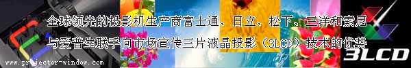 全球領(lǐng)先的投影機生產(chǎn)商富士通、日立、松下、三洋和索尼與愛普生聯(lián)手向市場宣傳三片液晶投影(3LCD)技術(shù)的優(yōu)勢。