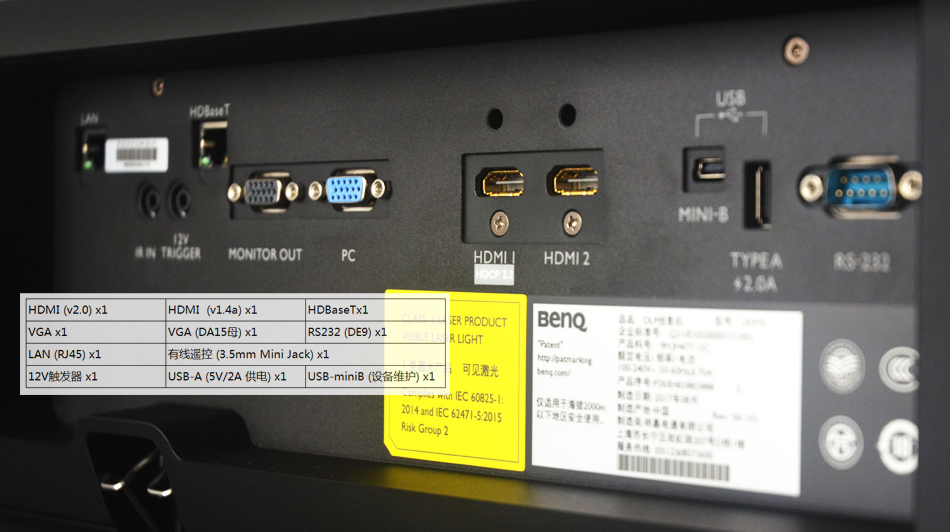 LK970 接口豐富實用,配備了一個HDMI 2.0和一個HDMI 1.4端子,其還支持HDBaseT端子滿足工程應用需求,VGA、VGA out、RS232、LAN、USB-A、USB-miniB等端子都有配備,各種類型應都非常方便。