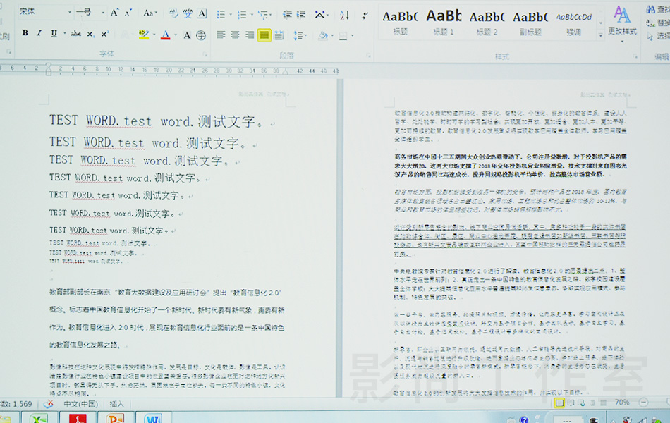商務(wù)投影機(jī)最主要的內(nèi)容就是各類(lèi)文檔與文件,我們準(zhǔn)備了WORD、EXCEL、PPT、Web網(wǎng)頁(yè)等用戶最常用到的文件,用此次測(cè)試的投影機(jī)播放,來(lái)呈現(xiàn)的文本顯示效果。
