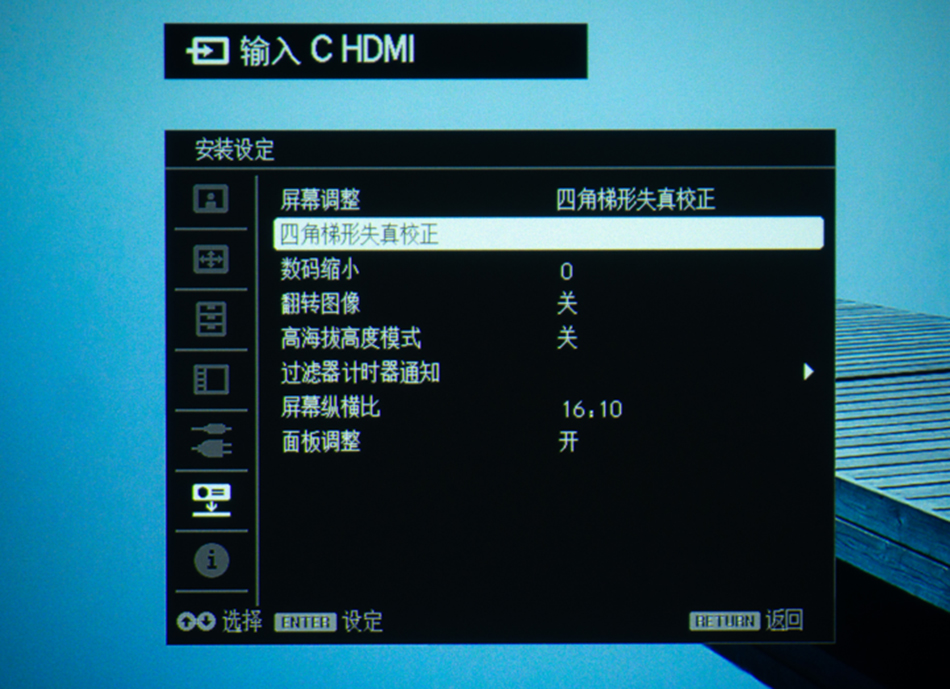 索尼VPL-P530HZ的畫面校正功能也非常易用,可以進行各種設定。屏幕調整可以選擇四角校正或水平/梯形校正。