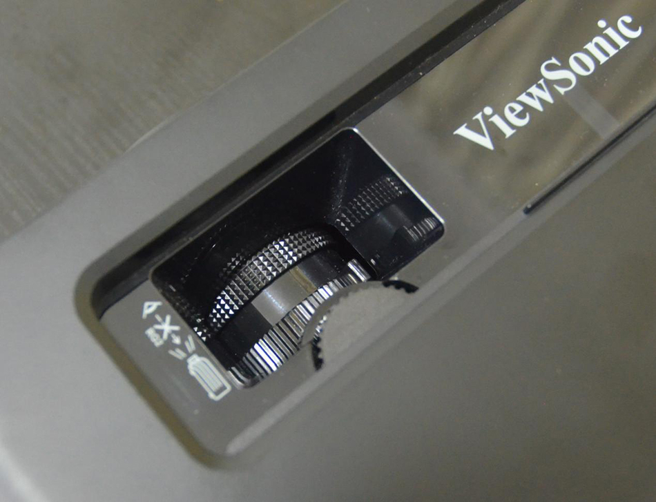 調(diào)焦旋鈕有良好阻尼感,前端旋鈕可手動(dòng)調(diào)整聚焦,后端旋鈕可控制畫面縮放,實(shí)現(xiàn)1.15~1.5:1的投射比。上方齒輪狀旋鈕則可實(shí)現(xiàn)鏡頭垂直方向10%的位移。