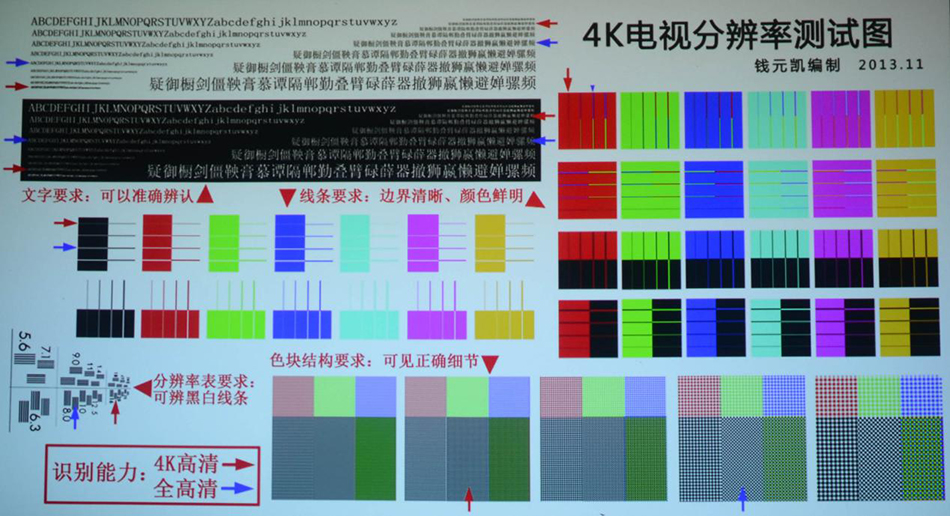 TK9采用了RGBG四通道三色LED光源,實(shí)現(xiàn)了亮度與分辨率的提升。測(cè)試圖中不同色塊顏色還原度高、線條文字清晰可辨。