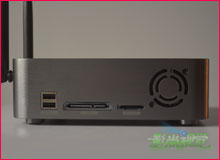 左側有2個USB接口,1個SATA接口及1個SD卡槽,還有1個散熱風扇。