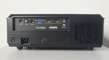 Pro9000最賦喜感的要數其正前方的鏡頭了,這顆手動聚焦及變焦的鏡頭擁有1.2倍的光學變焦能力,無論是變焦與聚焦都十分靈敏,也正是通過這顆鏡頭,Pro9000能夠投射出38"到150"的大畫面;機身頂部的按鍵操作區我們之前已經提到過,其按鍵反饋也是十分靈敏;頂部大大的優派的LOGO旁邊有一個標有25的黃色標簽,表明優派品牌已經成立25周年了;機身的底部擁有四個高度調節腳,平時不用調節的時候作為投影機的支腳,底部的一張白色的標簽上注明的Pro9000的詳細的信息,并且在底部擁有常規的吊裝帶接口等;從后方的接口我們可以看出,Pro9000的接口設計相對簡單,除去電源接口外僅有8個接口,其中包括兩個最長使用的HDMI接口。 |
