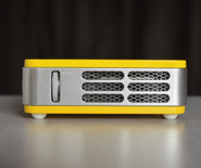 Q5是傳統投影廠商麗訊推出的系列微投中的第二款,其延續了上一代的整體風格,從外形設計上著力打造出科技與時尚的完美結合,同時為了迎合更多人的喜好,Q5共有象牙白、商務黑、中國紅、亮海藍以及熒光黃5個顏色可供用戶選擇。今天來到影尚視覺工作室的這款Q5就是熒光黃顏色的。 |