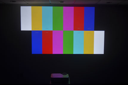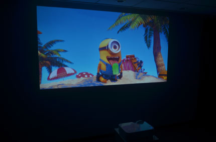 復雜的光路設計要求投影屏幕要足夠平整,稍有凹凸就會出現曲形失真;第二,畫面尺寸不易過大,理論尺寸以80-140為最佳;第三,出于效果考慮,應采取必要的遮光措施。通過右側的實拍樣圖可以看出,M352WS+