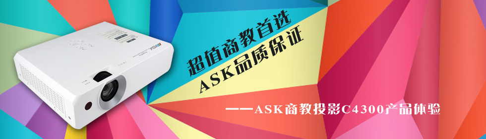 “經典品質,影像巔峰”ASK投影機2014年新品發布會10月23日在北京舉行,此次ASK全系列投影機悉數登場,包括短焦系列、高亮系列、工程系列、便攜商務、3D立體、點陣白板等產品讓人目不暇接,與會的業內人士充分感受到ASK產品的實力,ASK產品理念與市場布局更是值得關注。會上,ASK渠道營銷總經理楊俊為現場經銷商介紹了2014年ASK最新推出的高亮E3系列與超值商教C4系列產品,C4系列較為突出的綜合表現立刻得到了高度關注,今天影尚視覺工作室就帶領大家一起來全面的認識一下C4系列旗下的C4300新品。 |