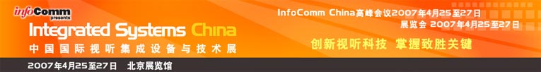 | 2007年中國國際視聽集成設(shè)備與技術(shù)展 (IS China) 從2007年4月25日至27日舉辦三天。展會邁進(jìn)第五個年頭,今年共有194家來自17個國家總的海外和國內(nèi)參展商, 較2006年展會規(guī)模擴(kuò)大了33%,展會展出面積達(dá)13,600平方米。大約有超過一萬名業(yè)內(nèi)專業(yè)人士和從業(yè)者前來參觀這個迄今規(guī)模最大的IS China展會,這些參觀者包括系統(tǒng)集成商、設(shè)備安裝人員、視聽設(shè)計顧問、零售商、分銷商、租賃及演出承辦商、編程人員和制造商。 |