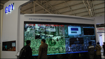 X 2)等。其展示的80英寸DLP大屏幕顯示拼接系統采用80英寸黑色玻璃屏幕以及智能雙燈光學引擎,內含IPAL內置圖像處理器。配合功能強大的IPW6800S圖像處理器,在支持原大屏幕系統所有功能的同時,萬能解碼功能還具有支持不同格式IP視頻流和流媒體信號的輸入。整個系統可提供豐富的組合顯示方式。