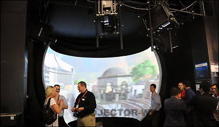 創新應用方面,3D成為毫無疑問的熱點。不僅有3D投影新品的發布,還有液晶拼接的3D展示,和億立(Elite Screens)、特麗(Da-Lite)、