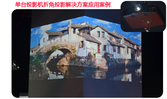 通過內置系統的調節,可以再折疊的墻面上,投影出圖形規整、清晰的圖像(無論內折或外折的墻面上均可調節投影)