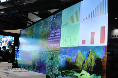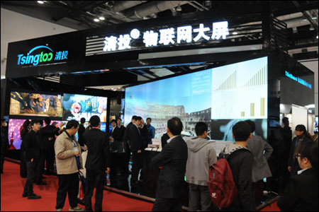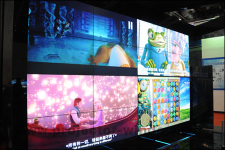 55寸LCD拼接大屏幕顯示系統(tǒng),展示高清畫面,畫面顯示效果非常出色;4X8 50寸DLP背投箱體拼接顯示系統(tǒng);以及三通道正投拼接融合系統(tǒng)。此次展會(huì)清投將正式推出TNet2.0物聯(lián)網(wǎng)拼接系統(tǒng),新的系統(tǒng)在原有1.0基礎(chǔ)上新增了5款A(yù)pp硬件應(yīng)用,是App商務(wù)體感、App信息上屏決策、App一云三端智能回顯、App高清底圖、App