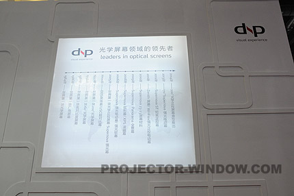 丹麥dnp是專業生產光學投影屏幕的制造商,擁有以光學技術作為高端顯示方案的世界領先地位,提供高品質的顯示解決方案,擁有全球光學投影屏幕市場的65%市場份額,它提供品種齊全的光學屏幕包括正投和背投屏幕(包括:廣角幕、超大幕、圖形幕、黑條紋幕及幕墻),尺寸由40″至200"無一不有。dnp在中國與贏康科技的深度合作讓其在中國銀幕市場獲得了非常不錯的反響,通過贏康的渠道整合能力和系統工程能力,相信dnp在中國會有更好的發展。