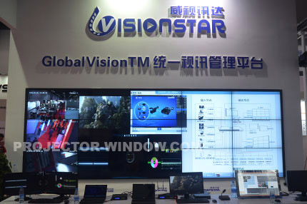 本次展會模擬了一個指揮中心的系統平臺,系統采用了威視訊達最先進的網絡化顯示平臺GlobalVision統一視訊管理平臺,系統是分布式網絡傳輸架構,支持系統內任意一路輸入信號能輸出到任意一塊顯示屏上。系統涉及輸入、輸出、管理三個節點,真正實現了:一點輸入、多點顯示;靈活操控、信息共享。將大屏幕顯示和拼接顯示系統從過去單純顯示信息為主的獨立顯示墻變成了各類數據信號網絡化信息顯示、多平臺決策支撐的互聯互通顯示平臺。
