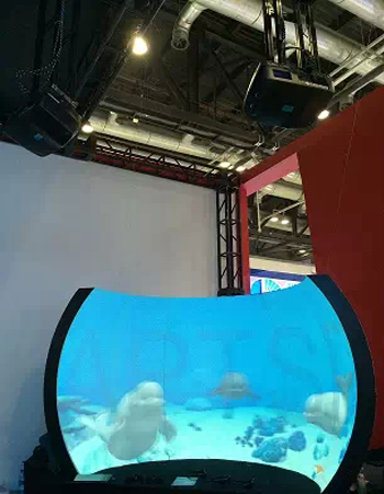球體互動系統采用分辨率為2560×1600,亮度為5500ANSI流明的CRPN-62B投影機搭建而成。這套系統所采用的投影機是巴可非常具有特點的產品之一,巴可也是目前業界唯一能夠提供2560×1600及2560×1080分辨率的廠商,達到了2.5K級別的分辨率,非常適用于需要顯示超清超寬分辨率的應用需求。其所搭配的互動系統可以實現360度多點觸控,在展覽展示行業有著廣泛的應用前景。 |