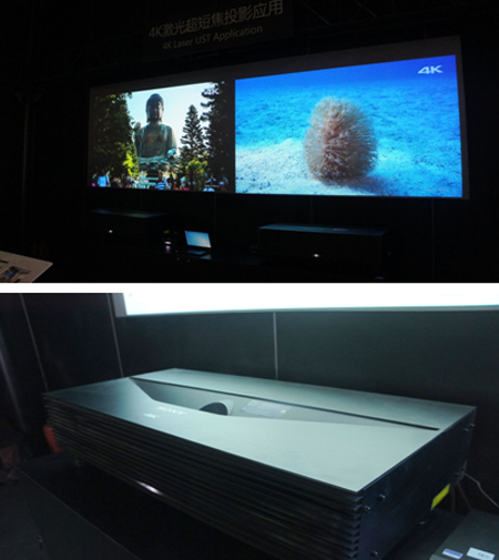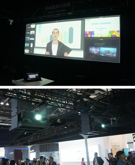 本展區索尼采用2臺VPL-GTZ1投影機,并結合全新的抗光屏幕進行工程應用演示。VPL-GTZ1是目前世界唯一的4K超短焦純激光投影機,僅需要18厘米即可投放150英寸原生4K超高清畫面,是未來投影技術發展的革命性產品之一。