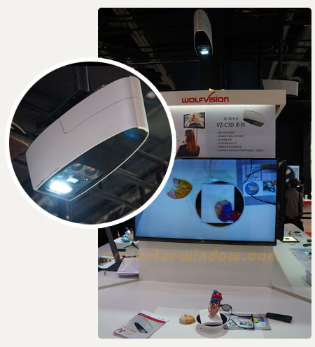 WOLFVISION是全球領(lǐng)先的視頻展臺廠商,在高端領(lǐng)域擁有強(qiáng)大的實(shí)力,此次它展示的新品3D展示臺VZ-C3D系列,其可以顯示3D近景實(shí)物,具備原始1080p分辨率,并具有60倍變焦范圍。其獨(dú)特的外形,可靈活的懸掛安裝,此外,獨(dú)特的同步廣場照明系統(tǒng)令效果更加出色。