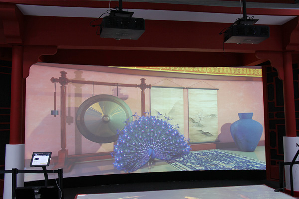短焦投影機(jī)完成曲面投影,逼真還原實(shí)物原型,特別適用于對(duì)高價(jià)值實(shí)物的虛擬展示。