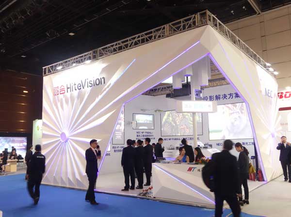 今年的鴻合科技展位無疑是展會中的一道亮麗風景線,無論是極具突破性且充滿科技感的展位設計;還是HiteVision全系列激光投影、鴻合代理的多款NEC工程投影機的集中展示,均讓參觀者眼前一亮。