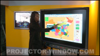 SmartBoard的另一亮點就是它自帶的軟件了。軟件的界面非常人性化,使用方法很好掌握。這里重點介紹的是SmartNotebook,在它白色的編輯區中,教師除了寫、畫以外,還可以將資源庫中的各種媒體組織起來。SmartNotebook的資源庫提供了相當豐富的資源,按照學科組織,使用者可以很方便的找到自己需要的內容。例如地理課上,教師可以找到一幅亞洲的地圖,將其拖動到編輯區,請學生上臺用筆劃出各國首都的所在地;對于有些需要動態示范的內容,例如物體運動,教師甚至可以用手指拖動相應對象,實時表現出運動的軌跡,而這些原本是要通過Flash等軟件,做出大量前期備課工作才能實現的。