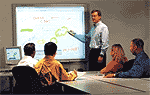交互模式將卓悅寶 DBi 電子屏板連接到 PC 機(jī)和多媒體投影儀,在高能的 InterWrite 軟件支持下,可構(gòu)造一個(gè)大屏幕、交互式協(xié)作會(huì)議環(huán)境。您可以隨心所欲地主持一個(gè)單點(diǎn)或多點(diǎn)實(shí)時(shí)協(xié)作與會(huì)議。同時(shí),利用多按鈕電子筆代替鼠標(biāo)和鍵盤功能,您可以運(yùn)行和控制任何應(yīng)用程序,并在任何應(yīng)用程序或展示運(yùn)行時(shí)對(duì)其進(jìn)行任意注釋。將任何形式的文件,包括文字、圖形、CAD 文件、圖畫、圖表、電子圖片、幻燈片等文件投射到屏板工作區(qū),并進(jìn)行標(biāo)注、著色、注釋、修改及擦除,保存文件以備瀏覽或分發(fā)。
