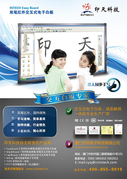 印天科技的交互設備和印天科技的創新精神一樣,是不斷尋求突破傳統以致臻完善的產品。而印天的電子白板更是在綜合了各款交互電子白板的優異功能的基礎上,再結合本公司研發的先進技術,從而使產品始終能保持高穩定性。