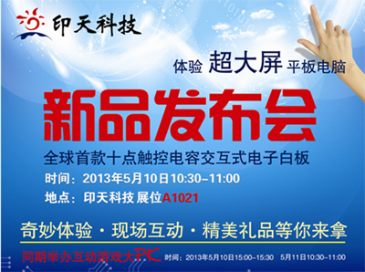 2013年5月10日—12日,第64屆中國教育裝備展示會將在武漢國際博覽中心隆重舉行,本屆展會,廈門印天科技將攜最新研制的全球首款十人同步書寫電容交互式電子白板驚艷亮相。結合展會“展示、合作、創新、跨越”特色定位,印天科技將帶給您不一樣的精彩紛呈。以新品發布為主題,展示會期間,印天科技除電容新品驚艷亮相外,其他電磁、紅外、光學等各系列主打產品也將集體展出。