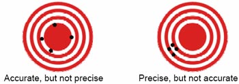 ● 精密性是在指相同的若干點之間的靠近程度,若干點靠的越近就越精密。