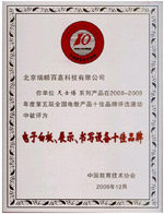 歲末將至,喜事連連。享有“電教行業奧斯卡”美譽的第五屆全國電教產品十佳品牌評選活動結果近日隆重揭曉。天士博憑借旗下產品的市場表現、企業綜合競爭力及長久以來對中國教育的突出貢獻,獲得廣大用戶和業內專家的首肯,榮膺“2008-2009年度電子白板、展示、書寫設備十佳品牌”。