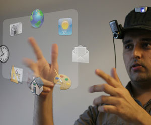 日前,名為“第六感”的個人投影系統亮相,這個新產品令人感覺非常具有科幻風格,設計者希望其可以變成與智能手機一樣隨身攜帶,并且隨時應用的便攜顯示產品。“第六感”個人投影系統主要由攝像模塊和微型投影模塊組成,用戶把它像帽子一樣戴在頭上。