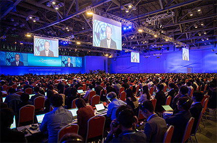 2014年國際電信聯盟(ITU)全權代表大會于10月20日至11月7日在韓國釜山BEXCO會展中心召開,包括韓國總統樸槿惠,盧旺達總統卡加梅和來自171個國家的2500多名代表出席了大會。繼2010年ITU全權代表大會(墨西哥)后,深圳市臺電實業有限公司連續兩屆獲得為ITU全權代表大會提供會議系統產品及技術支持的殊榮。本屆大會全程使用TAIDEN全數字會議系統和同聲傳譯系統。