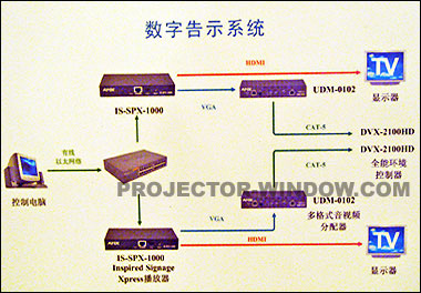 AMX公司把AMX中控系統(tǒng)和告示系統(tǒng)這兩種技術(shù)融合在一起,提供了一些列解決方案,范圍從簡單的單個的告示系統(tǒng)到復雜的交互式的應用,甚至是需要編程的系統(tǒng),比如顯示天氣的變化等等,用戶可以通過整個數(shù)字告示系統(tǒng)的網(wǎng)絡(luò)靈活的管理,也就是說可以在中央機房控制世界上各個地點的現(xiàn)實設(shè)備的開關(guān)等功能,所有的這些功能提供給組織者和公司有效地通訊模式