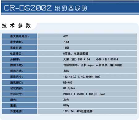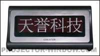 CREATOR電子桌牌采用雙面雙屏顯示設計。正面用于對外顯示與會者的身份,如姓名、職位、地區等到,支持中、英文雙語顯示,采用256X64點陣超大VFD顯示屏,具有高亮度,高清晰度的優點。桌牌采用流線型外觀,電子桌牌的背面(向發言者),設有80x14的LCD顯示屏,用于發言者與后臺的實時信息交流,如:短信息提示、會場服務提示等。