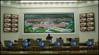 而使用全自動智能化設備中央集成控制系統配合觸摸屏就可以將復雜的控制環境簡單化。只需要用手輕觸觸摸屏上相應的界面就能對幾乎所有的電氣設備進行控制,包括投影機、屏幕升降、影音設備、信號切換、燈光照明、音量調節、DVD、錄像機等等的各種功能控制。大大提高了工作效率,也簡化了復雜的操作系統,帶來一個擁有優美音質、清晰圖象以及具備音視頻會議系統、大屏幕系統、(同聲傳譯系統、投票表決)等功能的大型作戰指揮中心。