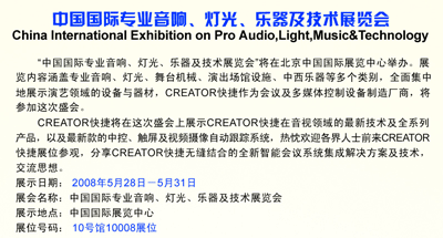 以及最新款的智能中控系統(tǒng)、觸屏及視頻攝像自動跟蹤系統(tǒng)等,CREATOR快捷熱忱歡迎各界人士蒞臨CREATOR快捷展位參觀,一起分享CREATOR快捷帶來的全新會議系統(tǒng)集成解決方案及技術(shù)。