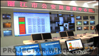 1、指揮中心拼接墻是8*8拼接墻,拼接兩邊是3*3的監(jiān)視顯示器,全市道路監(jiān)控全部接入實(shí)現(xiàn)視頻任意切換,任意顯示,做到第一時間,第一現(xiàn)場監(jiān)控。