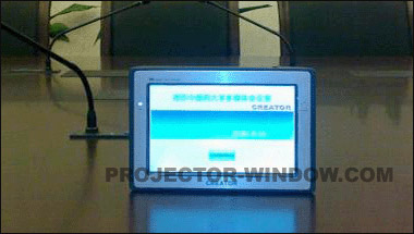 LCD顯示屏,觸屏解析度800×480像素,通過無線接收器(CR-RFA)與主機進行通信,可手持操作,配合CR-PGMII和Touch-AV使用,組成良好的控制系統(tǒng)。可通過CRRFA無線接收器與主機進行單向通訊,控制距離在開闊地帶可達50米。操作界面可編輯,圖形界面支持視頻、圖片、圖形、文字、3D按鍵。