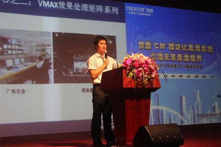 CREATOR快捷應(yīng)用研發(fā)部經(jīng)理朱小輝先生進(jìn)行“CM”模塊化高清系統(tǒng)的講解 |