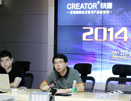 CREATOR快捷2014年中銷售大會進入到第二天的歷程,今天的主題是產品學習和交流的培訓會。培訓會分兩個階段進行。第一階段是研發部關于CM系統問題的匯總、剖析以及培訓。第二階段是培訓部關于2014年CREATOR快捷新品的產品培訓。兩個培訓會都意義重大,這是全國各地區同事半年來最接近新舊產品技術交流的大會,研發部總監龍靖先生向在場所有人介紹研發部上半年的產品技術更新情況和接下來的產品升級計劃。內容涉及到CM混合矩陣、傳輸設備和全數字會議系統。