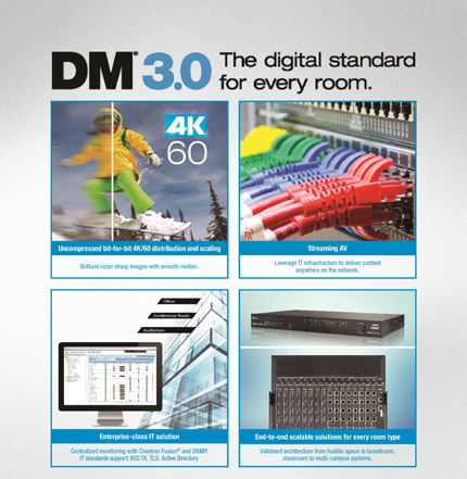 3.0不單純是一件實體產品,而是一組以專業為本,專為DM系列產品打造出來的核心標準技術:未經壓縮的位對位4K/60分配及縮放技術、AV流媒體處理、企業級IT解決方案、適合不同房間的端到端可擴展解決方案。您或可視之為專業顧問也趨之若騖的嶄新技術:“視頻分配系統必須是DM