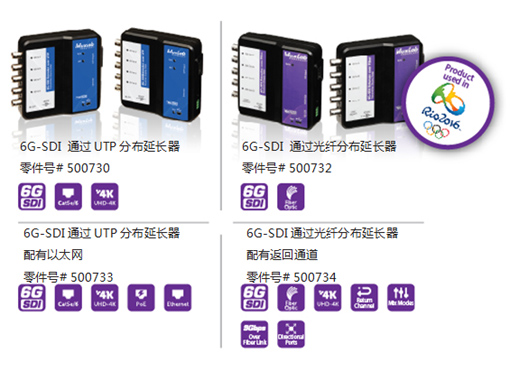 MuxLab支持多種型號(hào)的6G-SDI擴(kuò)展器,一些支持UTP和其他光纖,而一些支持音頻監(jiān)視,統(tǒng)計(jì)信號(hào),對(duì)講和攝像機(jī)控制部件(CCU)的返回通道。這些設(shè)備支持所有SDI配置(使用1,2或4個(gè)BNC),甚至是UHD-4K。