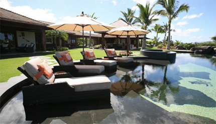 在夏威夷,房屋的內(nèi)部向外完全敞通的場景非常常見,而一棟房子擁有一套長達30多米的高級弱電布線網(wǎng)絡(luò)的情況就不那么常見了。同樣,你也很難在依山的房產(chǎn)中找到一個帶跳水臺、地下滑水道和洞穴的雙層游泳池。當iPad在大多數(shù)家庭中被用來上網(wǎng),觀看偶爾下載的電影和搜索新的音樂時,它在我們獲得金獎的戶外空間中運行著一個應用,能夠讓屋主操作包括這個巨大的游泳池系統(tǒng)、戶外的音視頻設(shè)備、幾十個彩色LED景觀燈和一套精密的戶外安保系統(tǒng)在內(nèi)的一切電子設(shè)施。