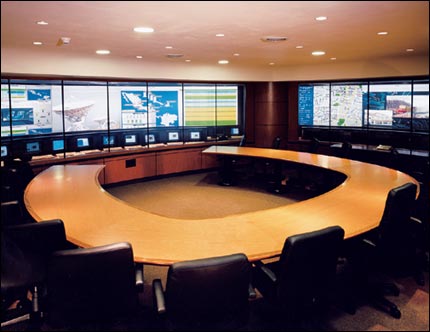 應急指揮中心: 也稱為 EOC,這類設施越來越受歡迎,它們設計用于為政府或私人機構針對潛在的緊急事件做好準備工作,同時在緊急事件期間提供指揮中心來管理各種資源。通常需要監視多種信息源,包括新聞,天氣、警務、火災、交通、民用通信以及電話和其它公共事業。這些地點需要大量的跨部門溝通。