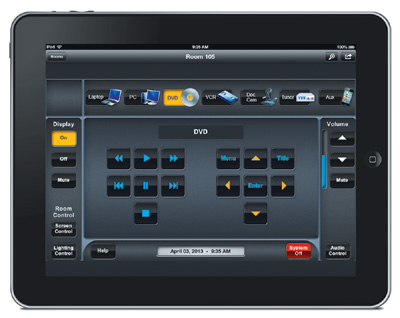 iPad版在安裝了TouchLink觸摸屏的房間,為用戶提供了一個額外的控制點。這款應用程序與全局配置器3.5所創建的項目兼容。使用這款應用程序,演示者可在房間的任意位置,甚至是房間之間,通過Wi-Fi網絡來無線控制視音頻系統。應用程序和觸摸屏之間的每一個按鍵動作都能進行實時追蹤,以便兩者保持同步。TouchLink