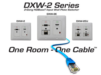 [投影之窗消息] DXW-2 系列是一個HDBaseT技術CAT擴展的2位多端輸入的DecoraTM風格面板。它能夠本地轉換VGA(YPbpr,S-Video、Video)+音頻為HDMI,并將此信號傳輸長達600英尺,因而該產品在眾多競爭產品中脫穎而出。輸入源可使用面板上的按鈕,或者通過匹配的接收裝置(DXE-CAT-RX,