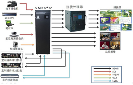 2.“ANY-TO-ANY”專利技術。S-MIX系列矩陣核心技術采用HDMI高清視頻技術,實現HDCP的自用認證功能和EDID自動讀取功能,所有數字HDMI信號可以實現即插即拔,在信號傳輸上采用HDMI專用線纜;S-MIX系列矩陣支持任意信號的輸入輸出,將模擬信號(VGA/YPBPR/CVBS)和數字信號(HDMI/DVI/3GSDI)任意互轉;分辨率任意設置,從當前最流行的1080P@60Hz到標清800X600的完全兼容。使得該項目中的高清視頻會議系統和表情視頻會議系統完美配合在一起。