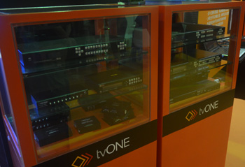 路來軍經理現場介紹了tvONE產品及方案,本次展會主要展出的還是視頻處理器C3-540。在說到C3-540混合矩陣器/轉換器時,路經理非常自豪的為我們介紹了這款系列產品的優勢,并結合現場展出的解決方案做了詳細講解。tvONE的CORIO®3技術除了具備高水平的影像處理能力之外,它靈活的擴展與整合能力更能滿足異形拼接設計的創意性和動態影像顯示的嚴格要求。 |