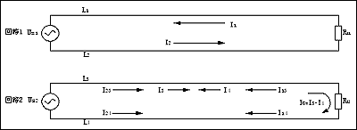 2.2.3 兩個扭距不同的雙線回路見圖6。回路1在線路的中點作扭絞。回路2除在線路的中點作扭絞外,還在A段和B段的二分之一處分別作扭絞。