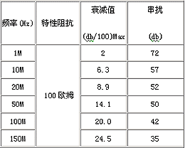 超五類雙絞線的特性阻抗、衰減、串擾數據見表2。